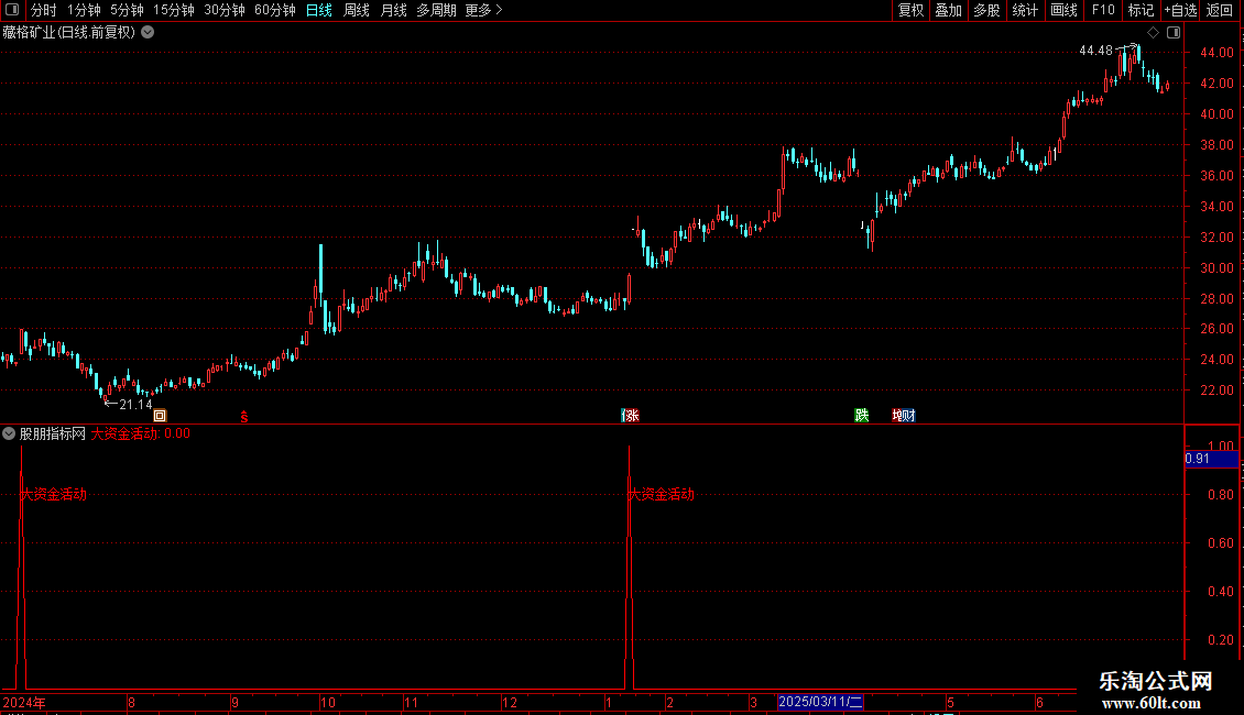 大资金活动:IF(VAR20 AND COUNT(VAR20,30)=1,1,0),LINETHICK1,COLORRED;