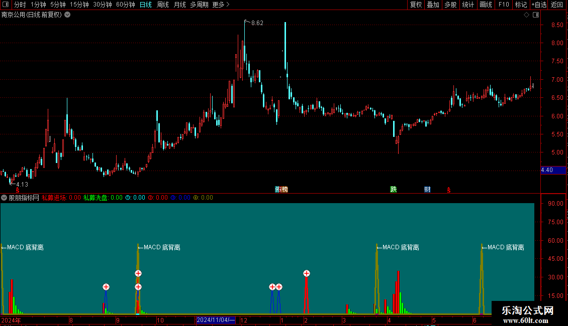 DRAWTEXT(底背离,54,'←MACD 底背离'),COLORWHITE;