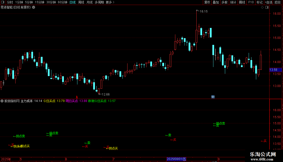 DRAWTEXT(CROSS(卖线,买线),HIGH*1.01,'←卖'),COLORGREEN;