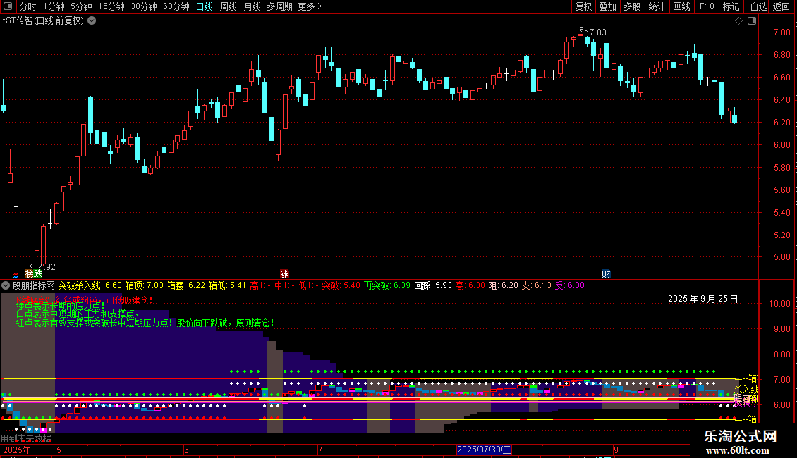 STICKLINE(买线<卖线,HHV(H,60),LLV(L,60),5,0),