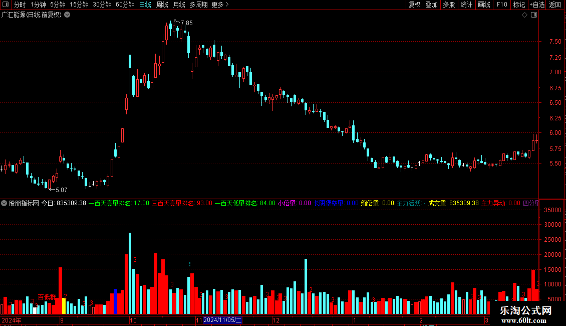 一百天低量排名:LOD(V,100),NODRAW,COLORGREEN;