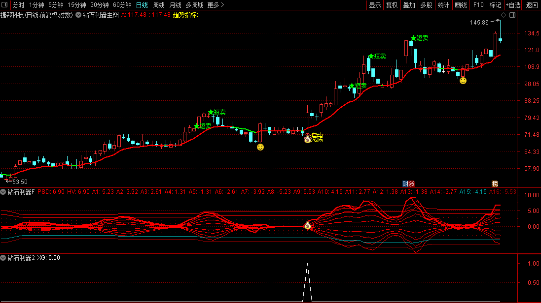 通达信【钻石利器】主副图/选股指标强势突破多层通道结合三个维度源码