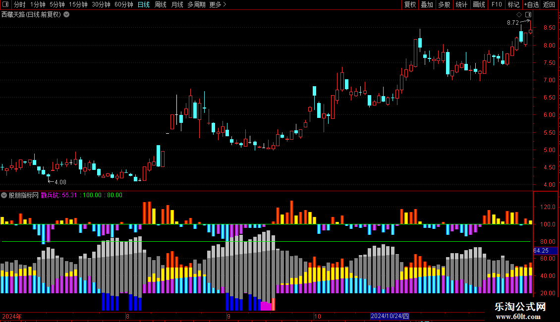 STICKLINE(TGLXS=0 AND REF(TGLXS,1)<0,100,TGLXS+100,8,0),COLORWHITE;