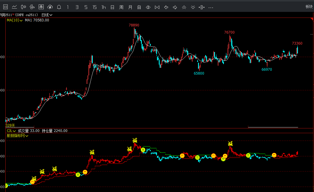 DRAWTEXT(CROSS(84,HLTS36) AND HLTS7< HLTS8, HIGH,'减'),COLORYELLOW ,VALIGN2,FONTSIZE19;
