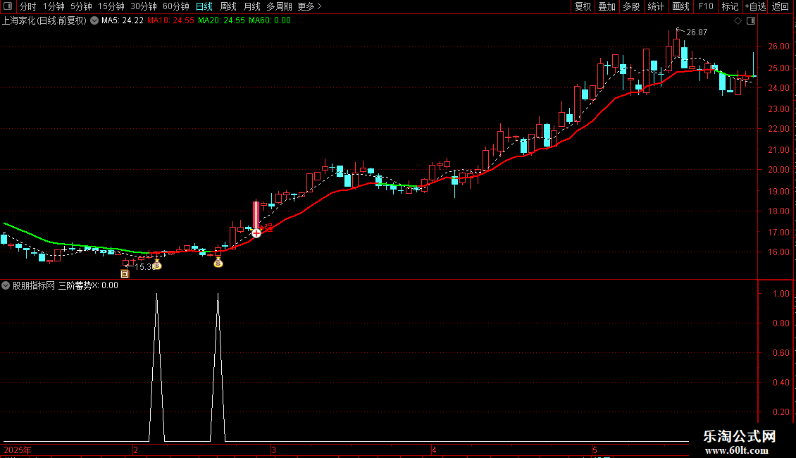 2、钱袋子信号即为公式 适用于尾盘 当信号趋势向上且均线呈多头排列发散时 是捕捉大幅拉升的入场时机