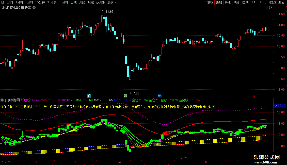 VAR15 := ((VAR12 > MA250) AND (VAR12 > 空仓1)) AND (MA250 < 空仓1);