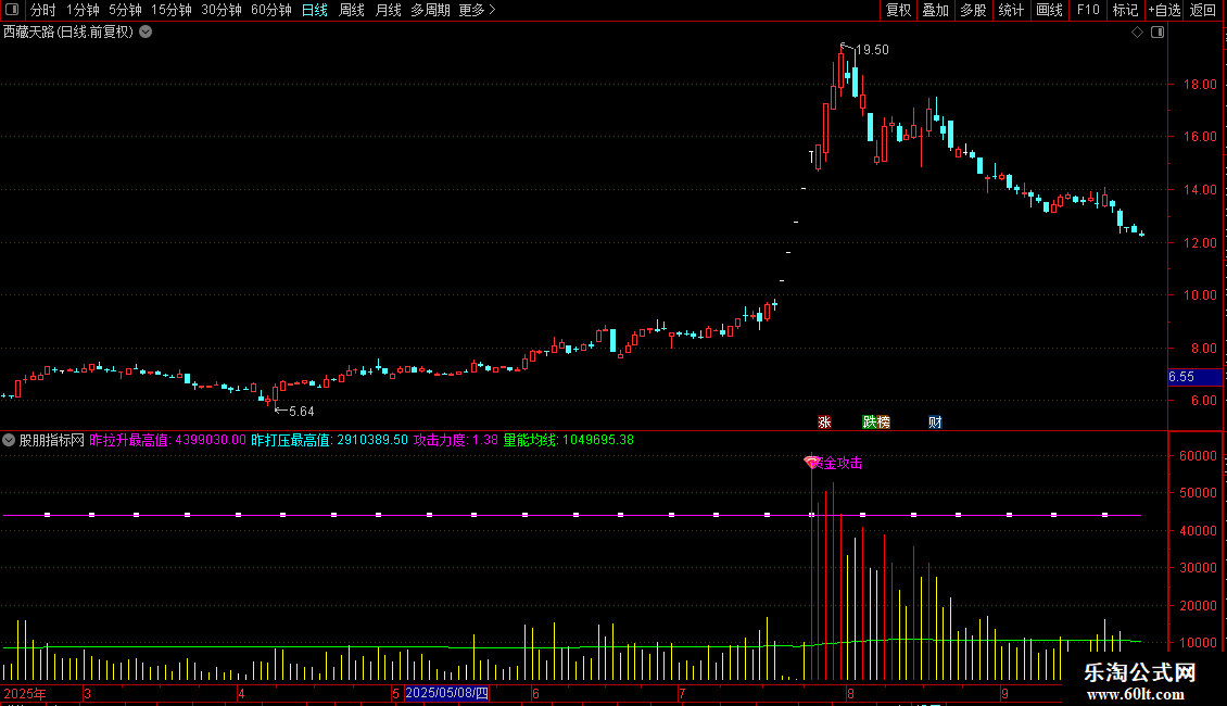 今打压最高值:=CONST(REF(HHV(打压量,FROMOPEN),0)),COLORCYAN;