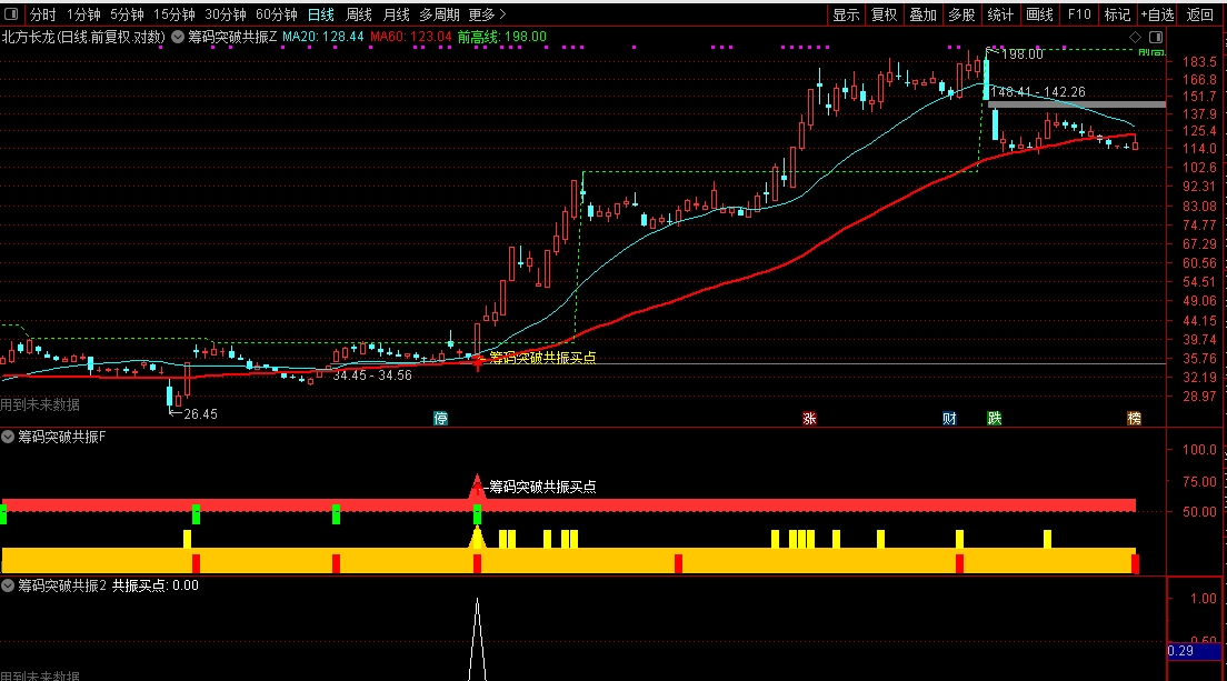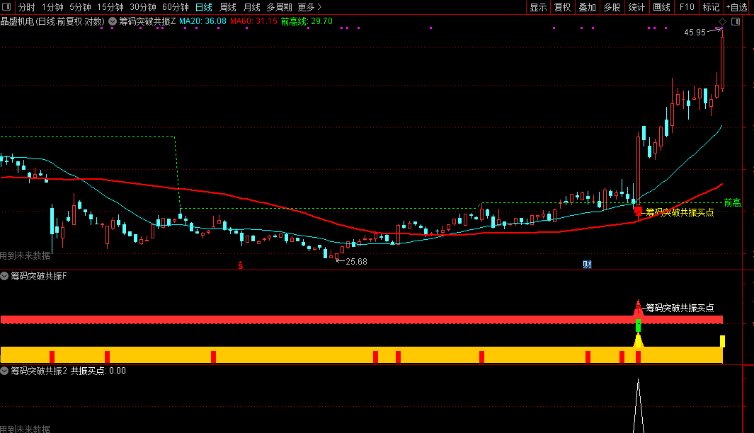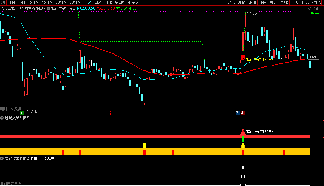 通达信【筹码突破共振】主副图/选综合了前高突破量价关系等四个维度分析源码