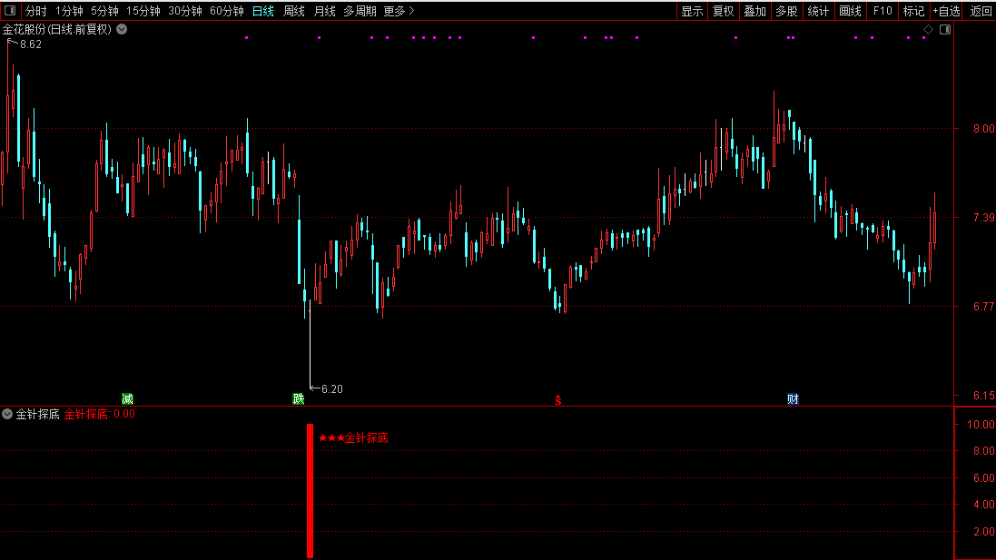 金针探底指标信号分散不扎堆,各周期均可能出现有效信号。从见底信号到底部拉升,形成完整系统化操作链条。底部才是长期生存王道,拒绝成为资本鱼饵,坚持底部思维才能规避大起大落风险。