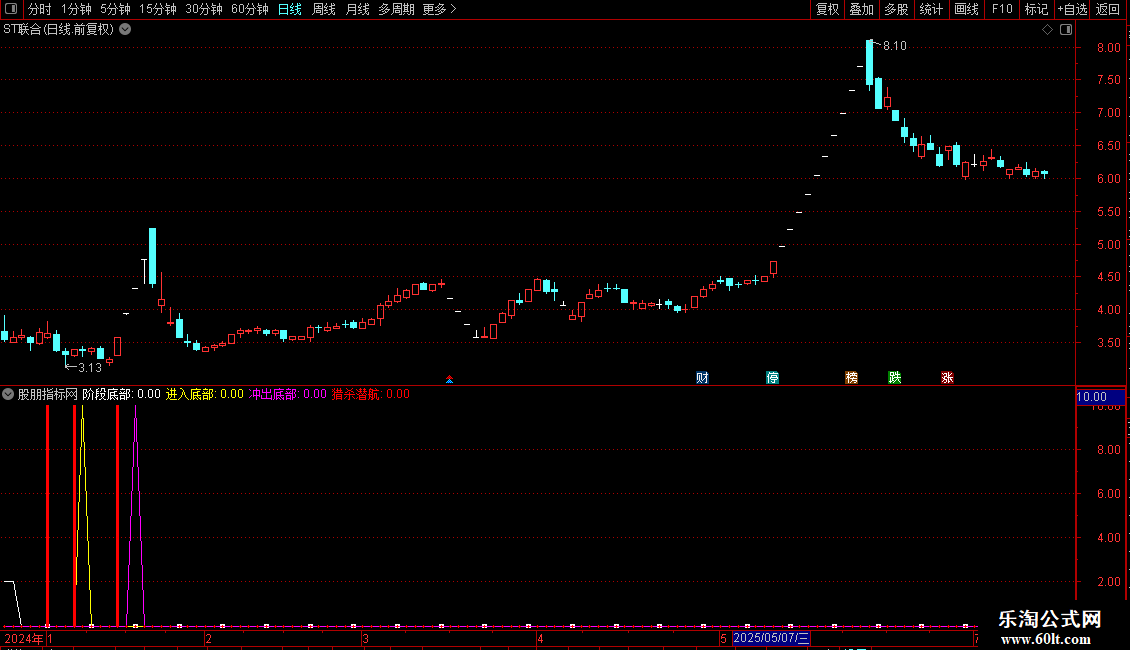 猎杀潜航:IF(CROSS(趋势,底部),10,0),STICK,COLORRED,LINETHICK3;