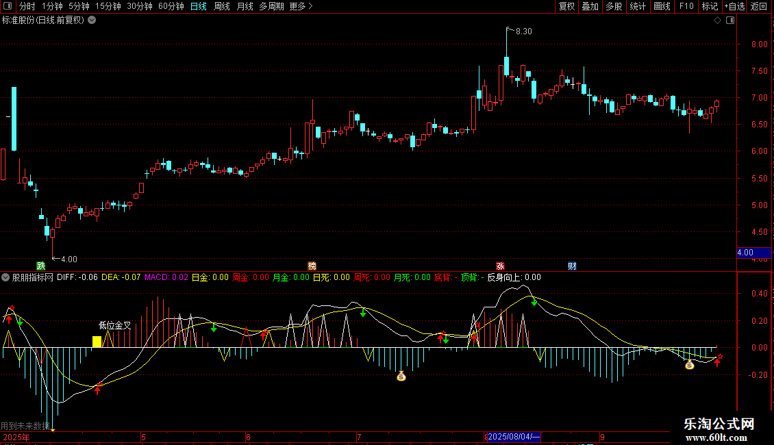 DRAWTEXT(低位金叉,0.16,' 低位金叉'),COLORWHITE;