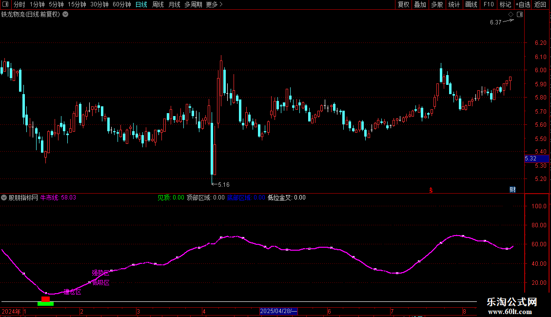 DRAWTEXT(CROSS(牛市线,20),30,'强势区'),COLORFF00FF;
