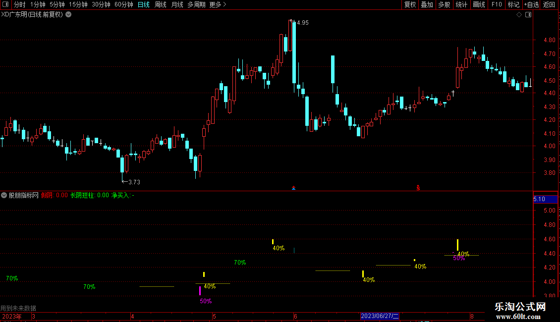 长阴短柱:CLOSE/REF(CLOSE,1)<=0.96 AND VOL<HHV(VOL,30)/1.9,NODRAW,COLORGREEN;