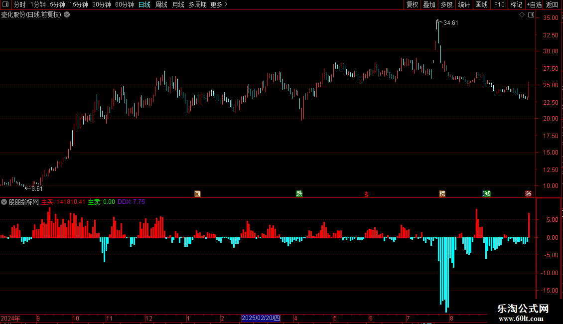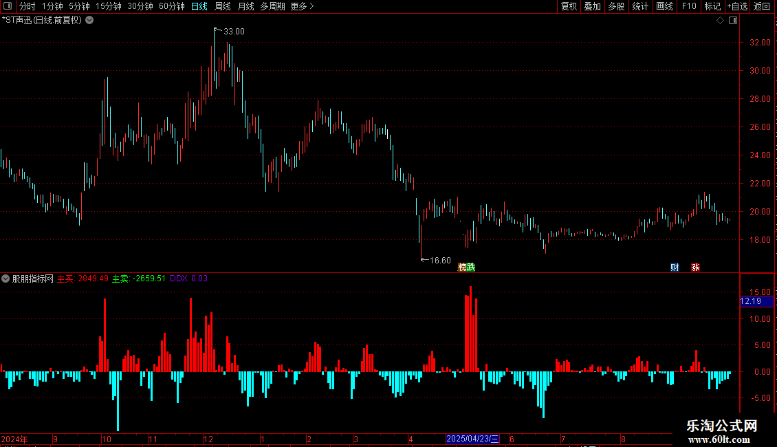 STICKLINE(大单动向<0,0,大单动向,2,0),COLORCYAN;