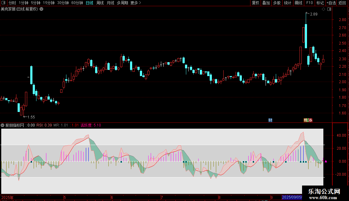 MD:=MA(RS1,6),COLOR0000FF,NODRAW;