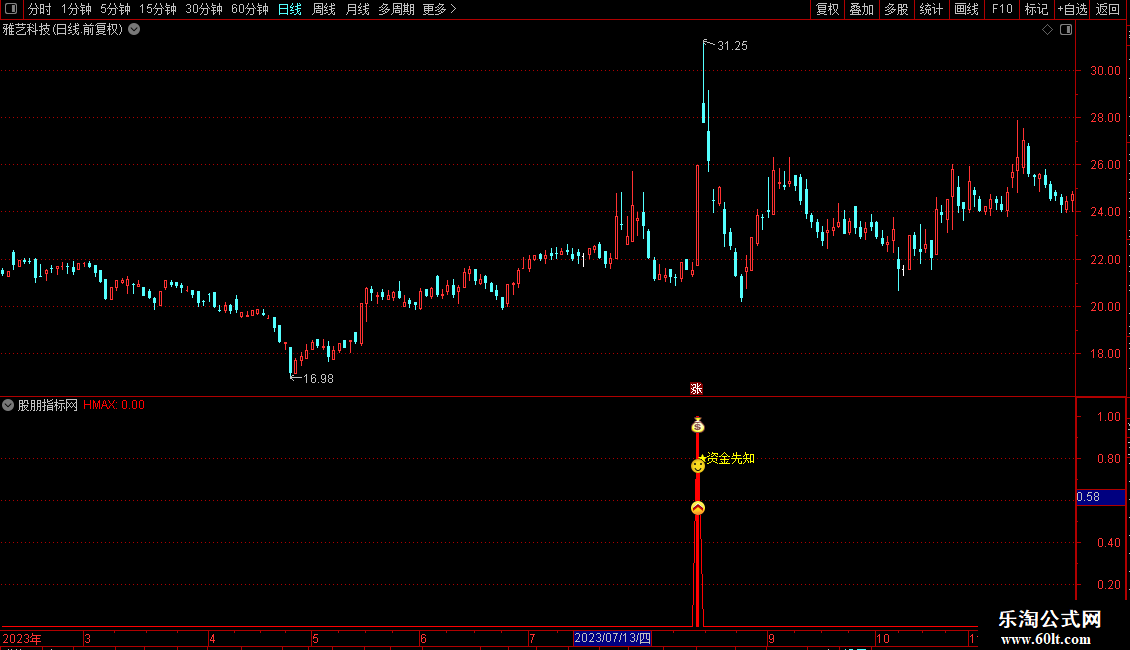 DRAWTEXT(HMAX,0.8, '★资金先知'),COLORYELLOW LINETHICK6;