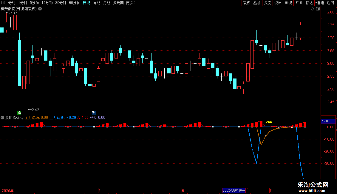 主力退场:IF(VAR5>REF(VAR5,1),VAR5,0),LINETHICK2,COLOR0066BB;