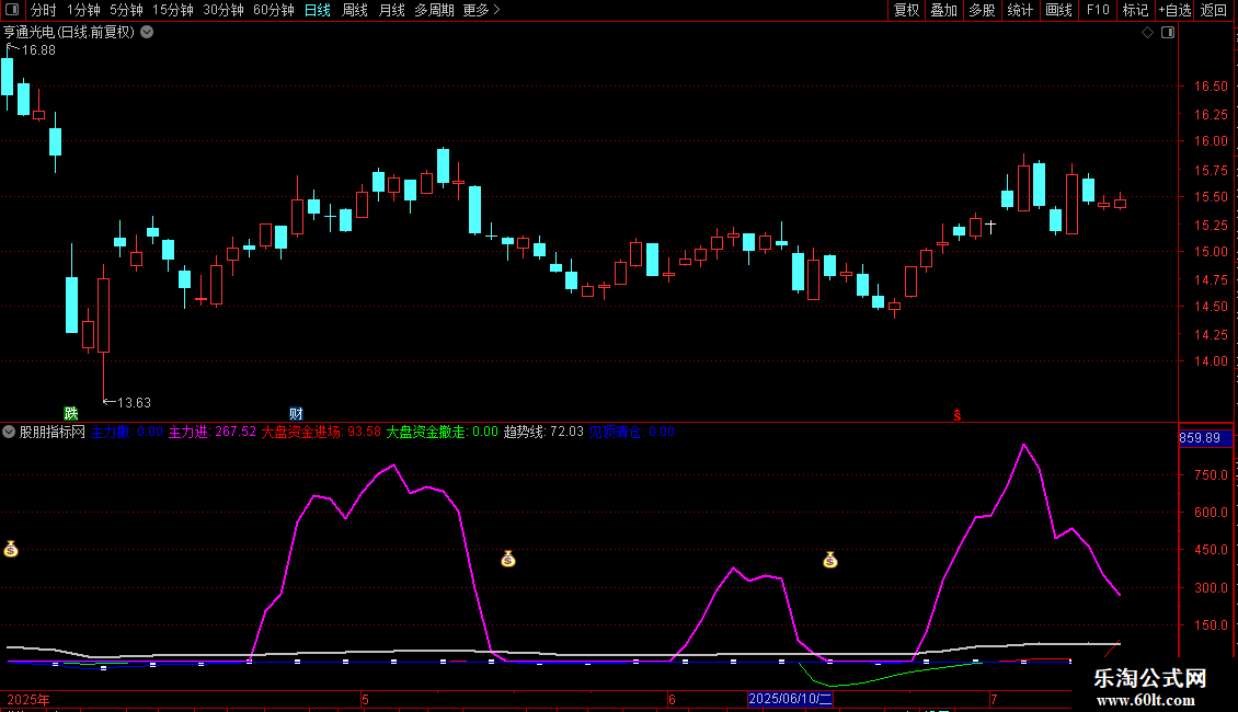 DRAWICON(CROSS(趋势线,主力进),L*30,9);