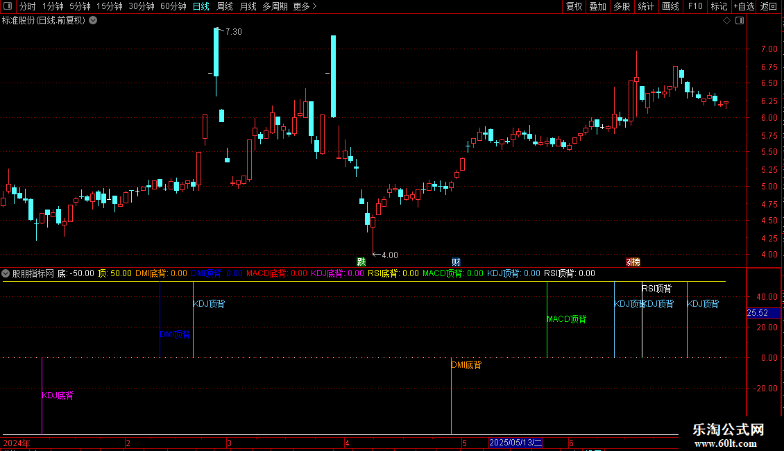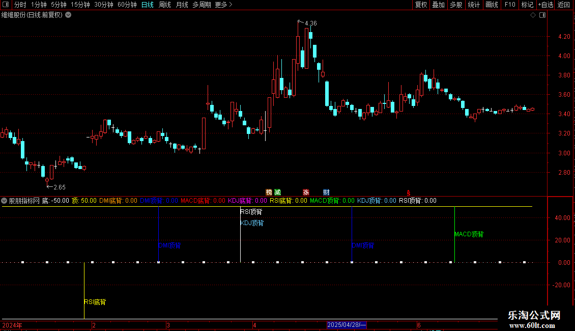 RSI顶背:IF(D3>0,50,0),COLORFFFFFF,POINTDOT;