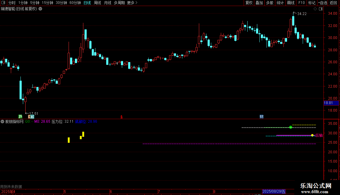 压力位:IF(ISLASTBAR,压力2,DRAWNULL),NODRAW;