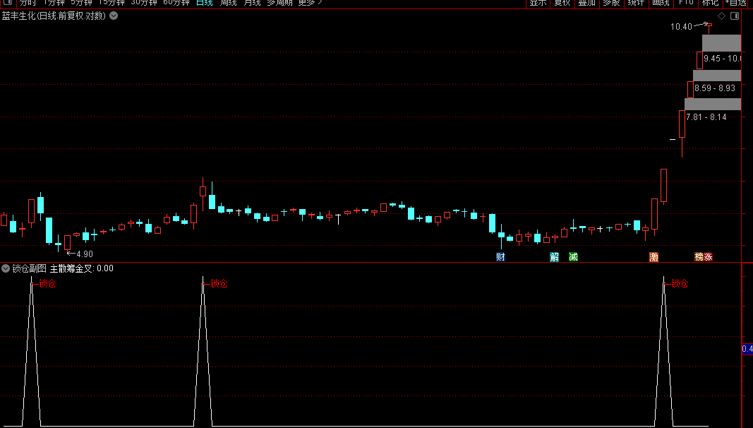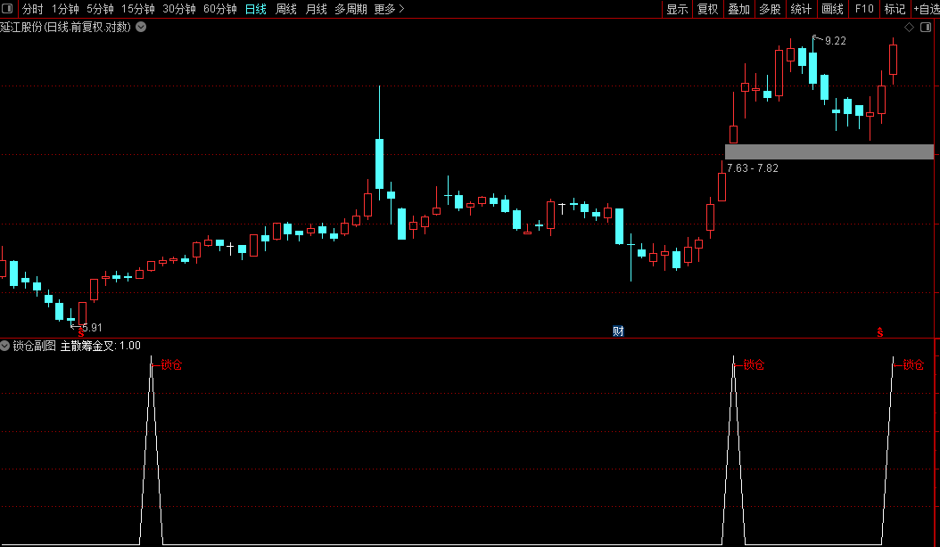 以下为锁仓信号的副图与选股公式源码(未加密),供投资者参考使用。副图信号可叠加其他技术指标协同分析。