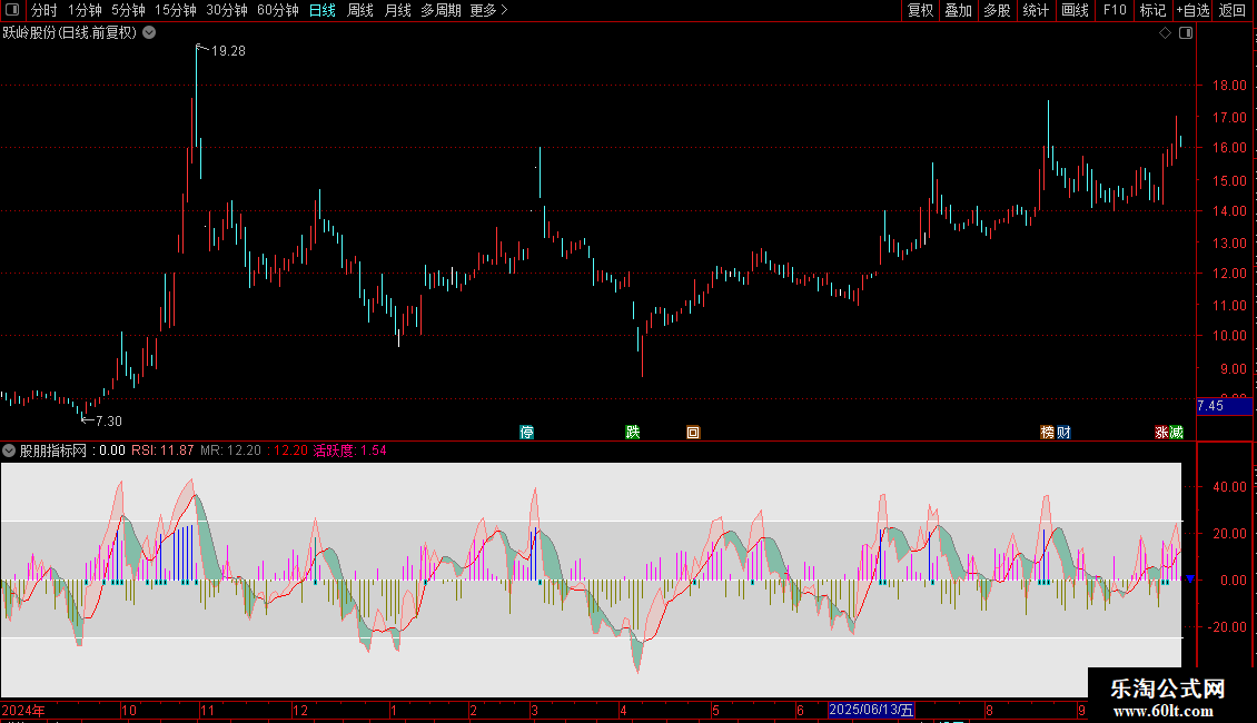 RS1:=SMA(MAX(CLOSE-LC,0),7,1)/SMA(Abs(CLOSE-LC),7,1)*100-50;