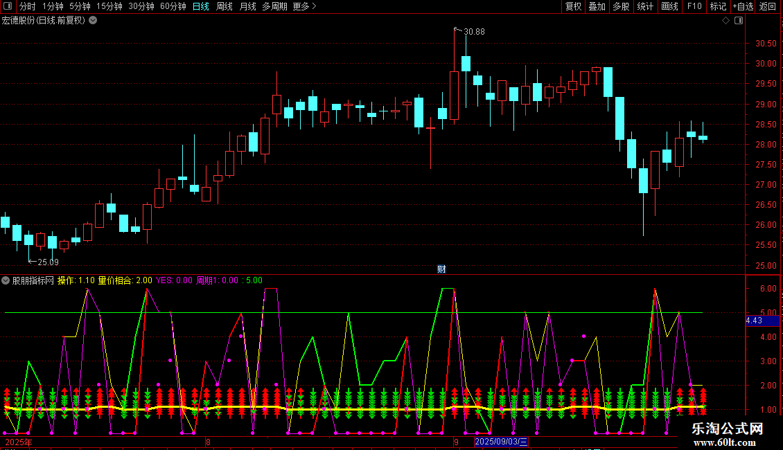 IF(YES>=REF(YES,1),量价相合,DRAWNULL),COLORGREEN,LINETHICK2;