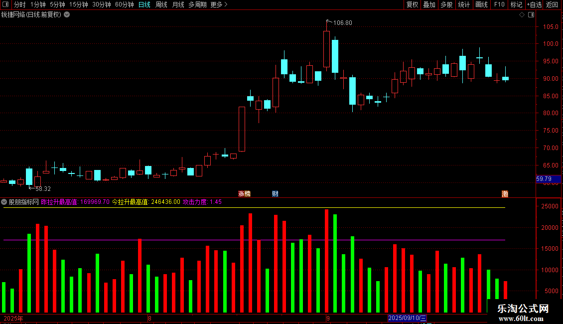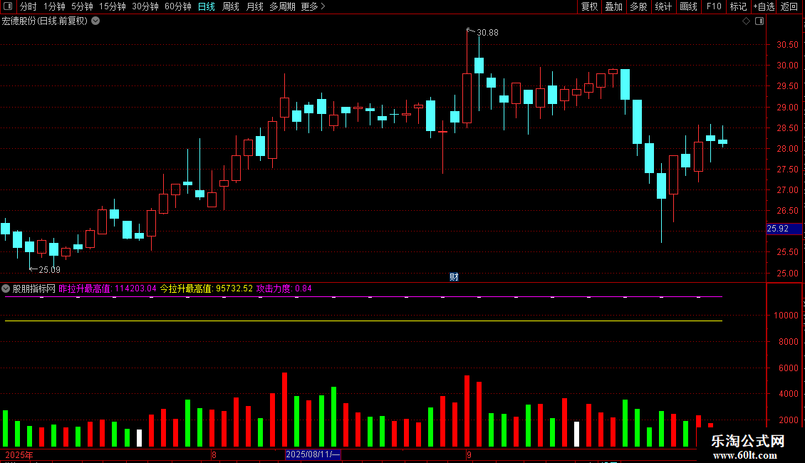 昨拉升最高值:CONST(REF(HHV(力度,FROMOPEN),239)),LINETHICK1,COLORMAGENTA;