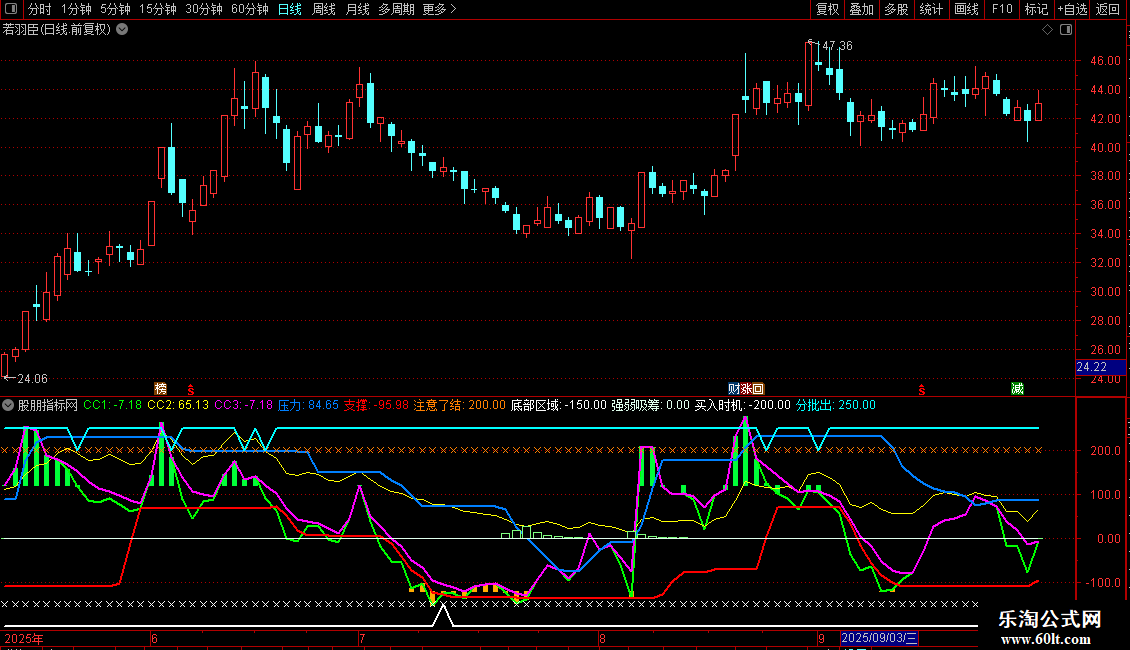 分批出:IF(CROSS(80,MM),200,250),LINETHICK2,COLORCYAN;