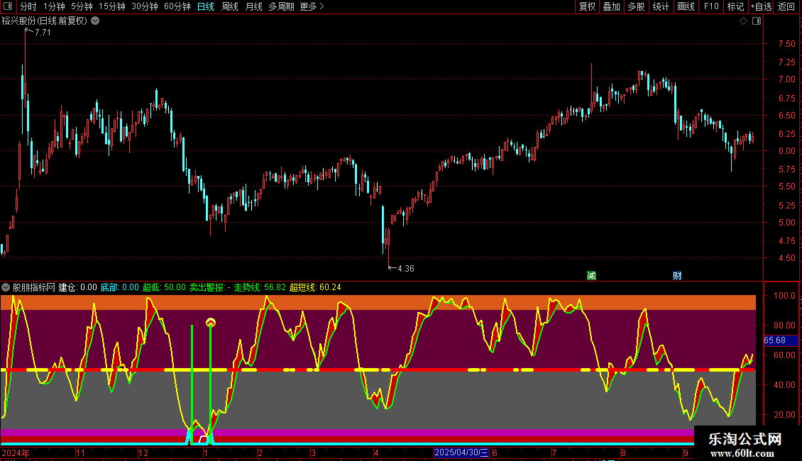 超短:=IF((VAR36< VAR38),VAR38,VAR36),COLORFF00FF,LINETHICK2;