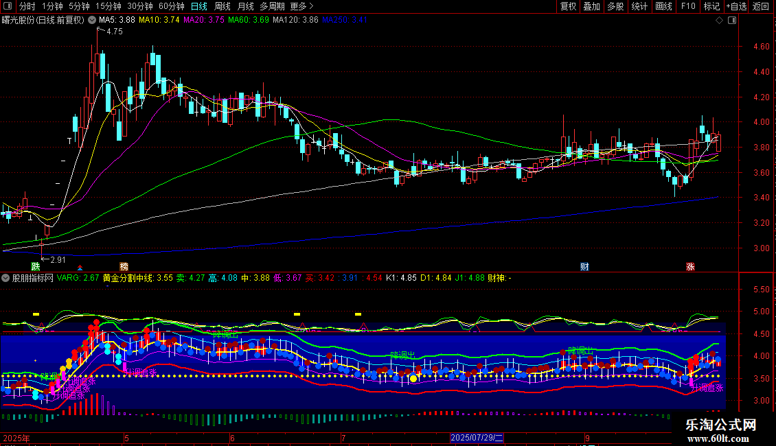 上中:=IF(1=1,低0+KJ*0.618,DRAWNULL),COLORMAGENTA,NODRAW;