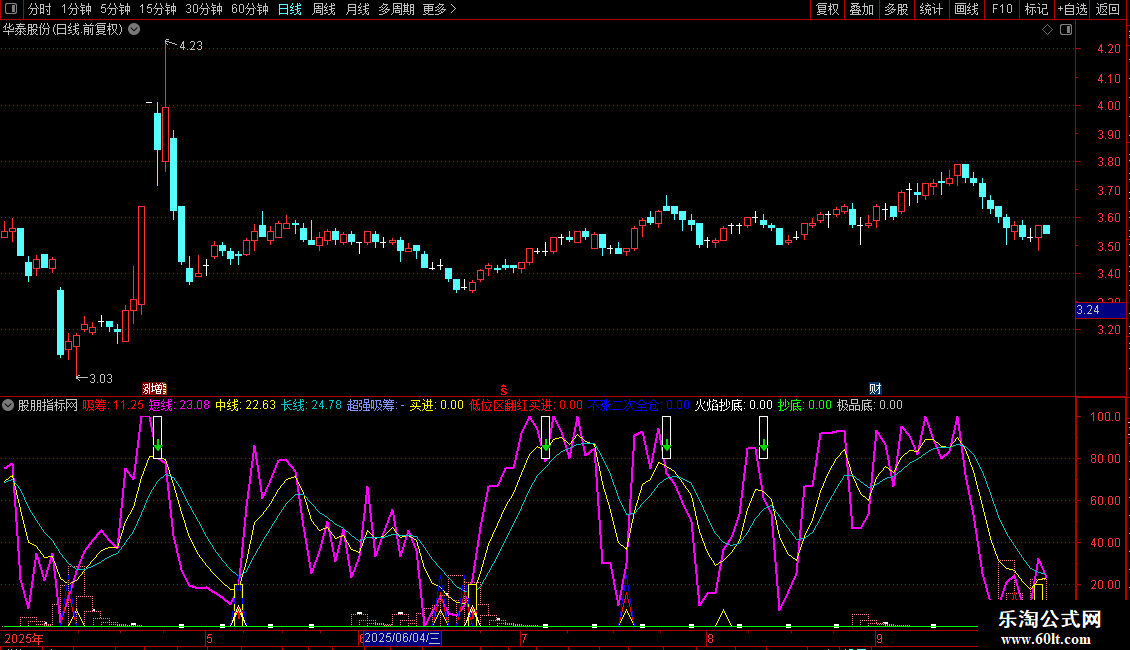 不涨二次全仓:IF(CROSS(J,REF(J+0.01,1)) AND X AND J<10 AND C>REF(C,1),24,0),COLORBLUE;