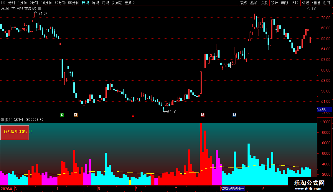 DRAWTEXT_FIX(CURRBARSCOUNT=1 AND COUNT(V>EMA(V,60),7)< 3 ,0,0.1,0,' 短期量能评定:'),COLORYELLOW;