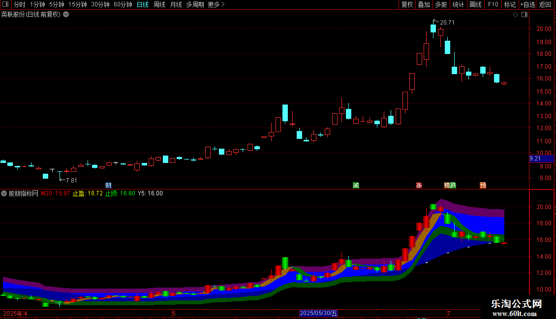 DRAWBAND(M20,RGB(0,0,155),止损,RGB(0,0,155));