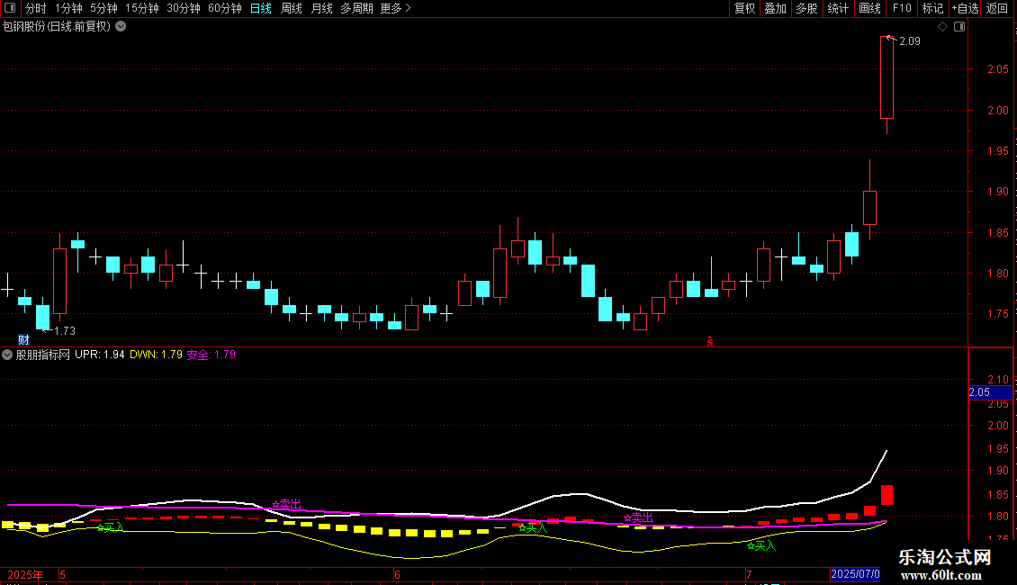 OPEN>REF(CLOSE,1),1,0),LOW*0.98,'买进') ,COLORYELLOW;