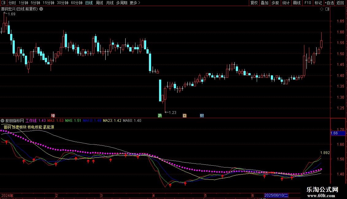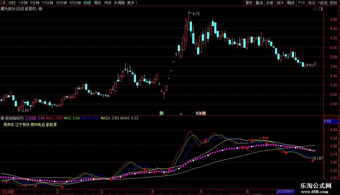 工作线:(EMA(C,40)),POINTDOT,LINETHICK5,COLORMAGENTA;