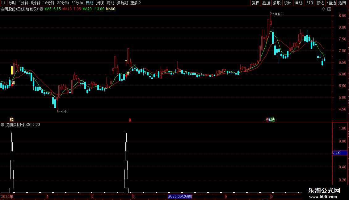 买入信号K线:以黄色柱状图形式示出,是明确的买入信号。当该信号出现时,建议投资者在此时进行买入操作,以期在股价上涨前布局,获取投资收益。