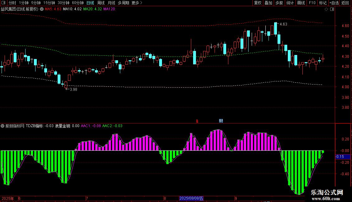 STICKLINE(TDZB指标>=0,TDZB指标,0,2,0),COLORMAGENTA;