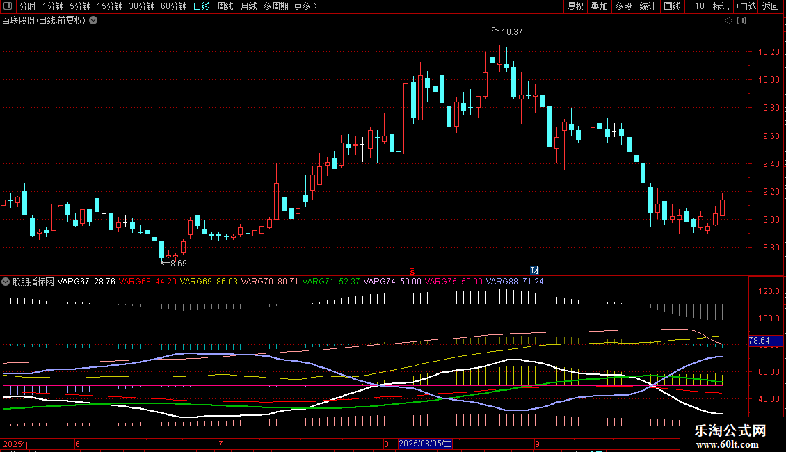STICKLINE((VARG67-VARG71)< 0 AND VARG67>80,110,110+(VARG67-VARG71)/2,0,0),COLORFAABEC;
