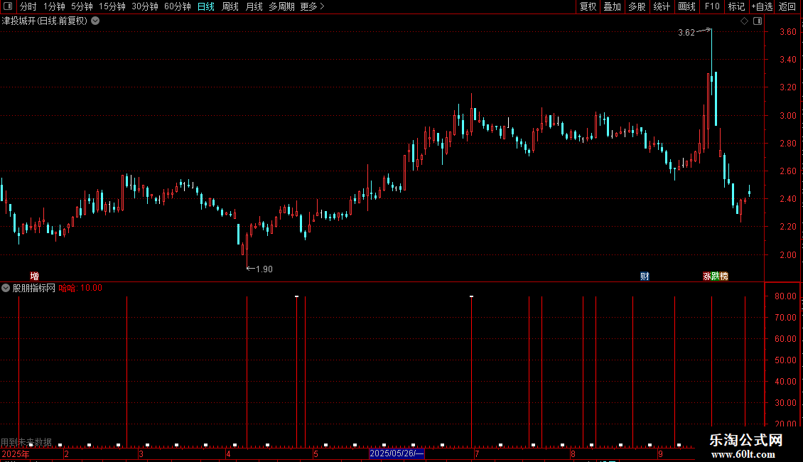 哈哈:IF(REF(TJ,1)=0 AND TJ>=1,80,10),STICK,COLORRED;