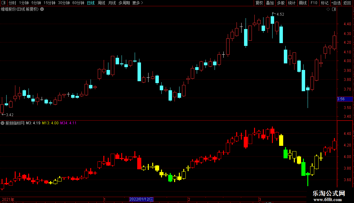 STICKLINE(M3>=M13 AND M34>=REF(M34,1) AND C<O ,O ,C ,3 ,0 ),COLORRED;