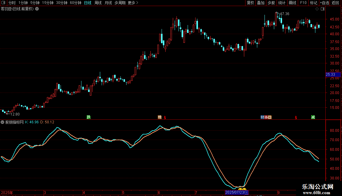 买入:=CROSS(J,D )AND CROSS(J,K)AND K <40 AND D<50 AND J<50;