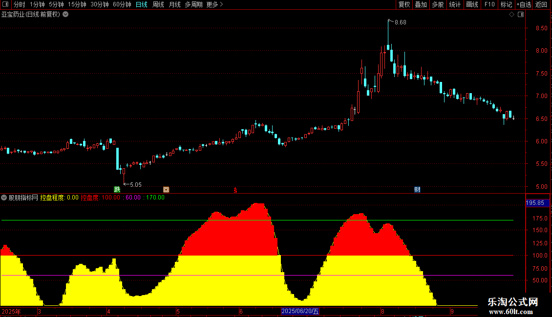 控盘程度:(IF(B6>N1,B6-N1,0))*2.5,COLORYELLOW;