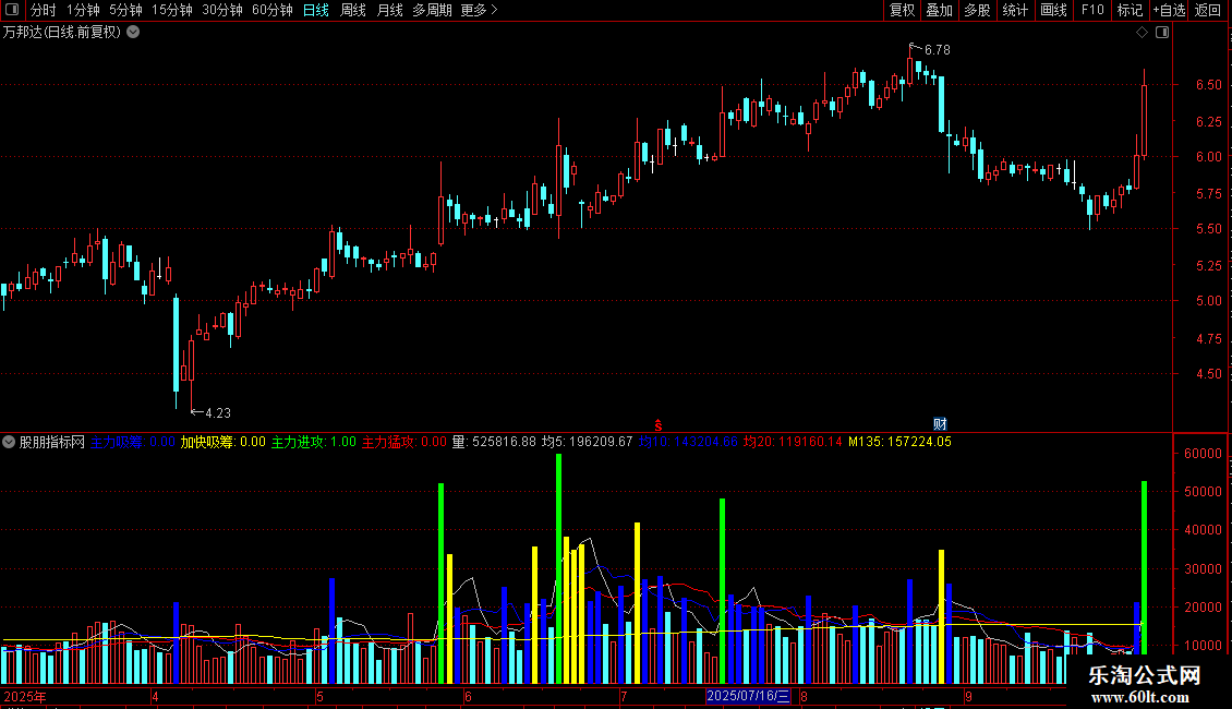 主力进攻:换手率>7 AND 换手率<=10,COLORGREEN;