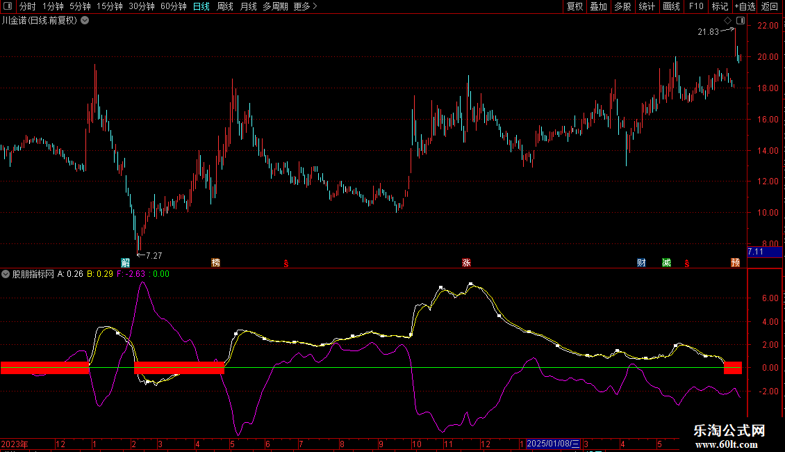 FX:=EMA(MA90-EMA((MA(R*ZL,2)/MA(ZL,2)-MA90),1),2);