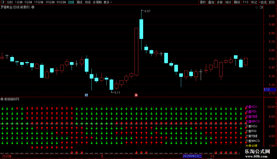 DRAWTEXT(ISLASTBAR,6,'个股KDJ'),COLORWHITE;