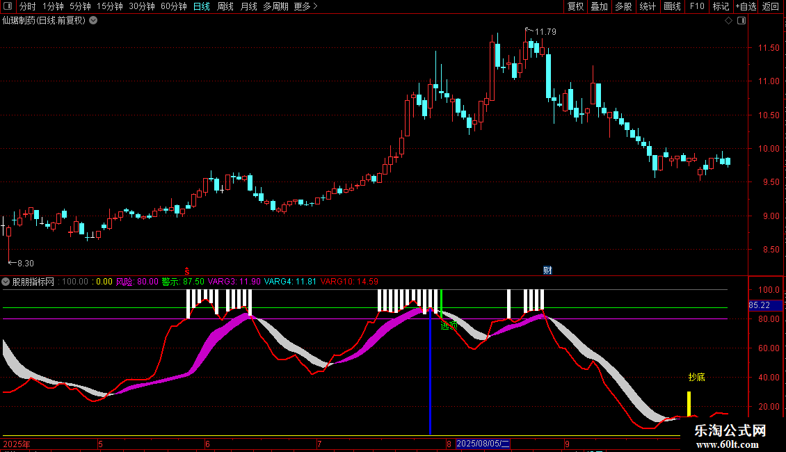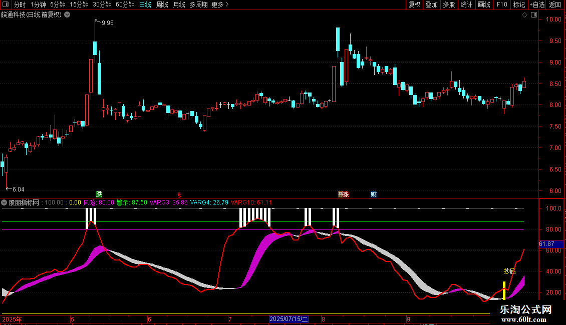 DRAWTEXT(FILTER(VARG5,10)=1,40,'抄底'),COLORYELLOW;