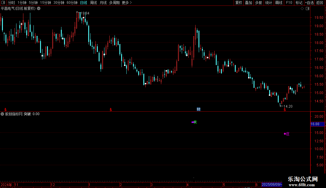 DRAWTEXT(VAR162 AND TIME< 1440,CLOSE,'★庄'),LINETHICK5,COLORMAGENTA;