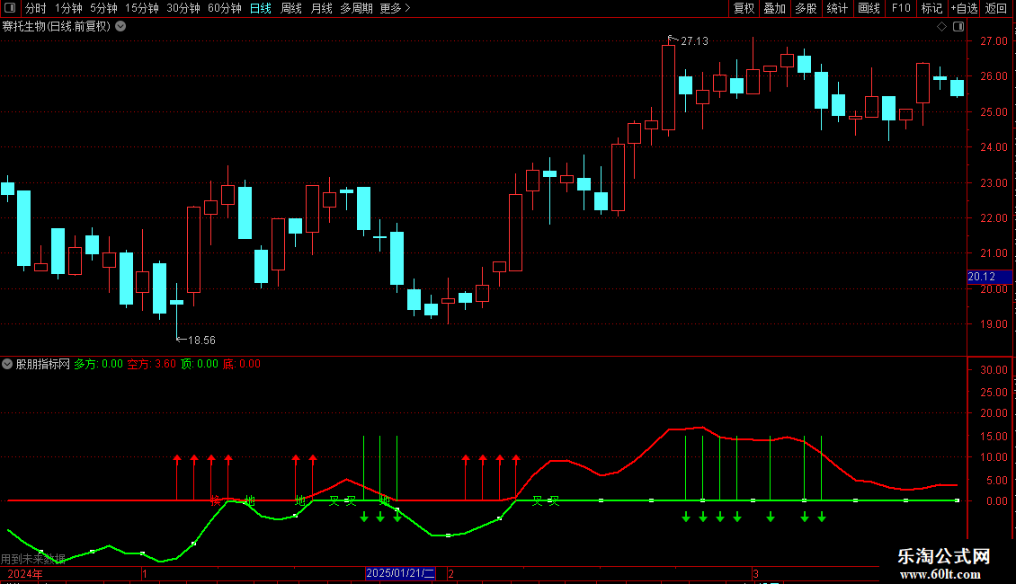 DRAWTEXT(H1>3 AND DIFF+0.015>DEA AND BIAS25<2 AND H1<15,多空平衡,'换'),COLORRED;