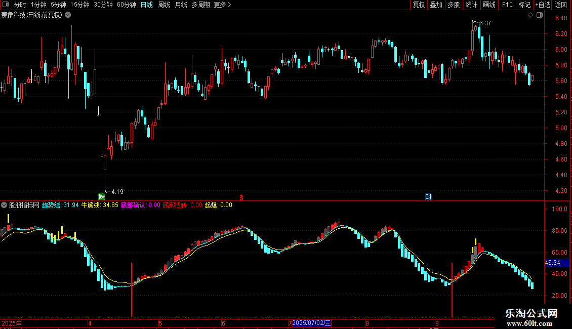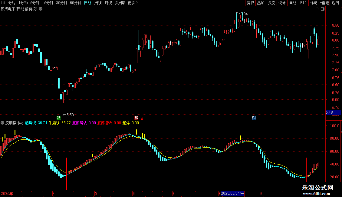 紫色柱状线:代表底部确认信号,表明股价可能已处于底部区域。